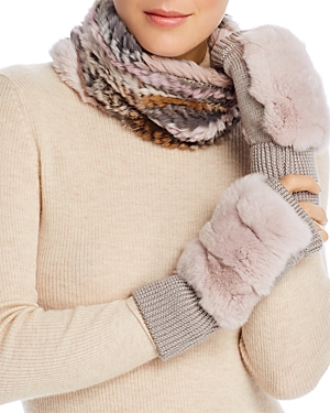 Jocelyn Knit Rabbit Fur Cowl & Rabbit-Fur Trim Fingerless Mittens